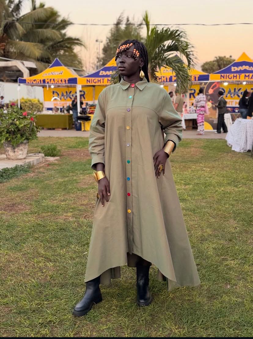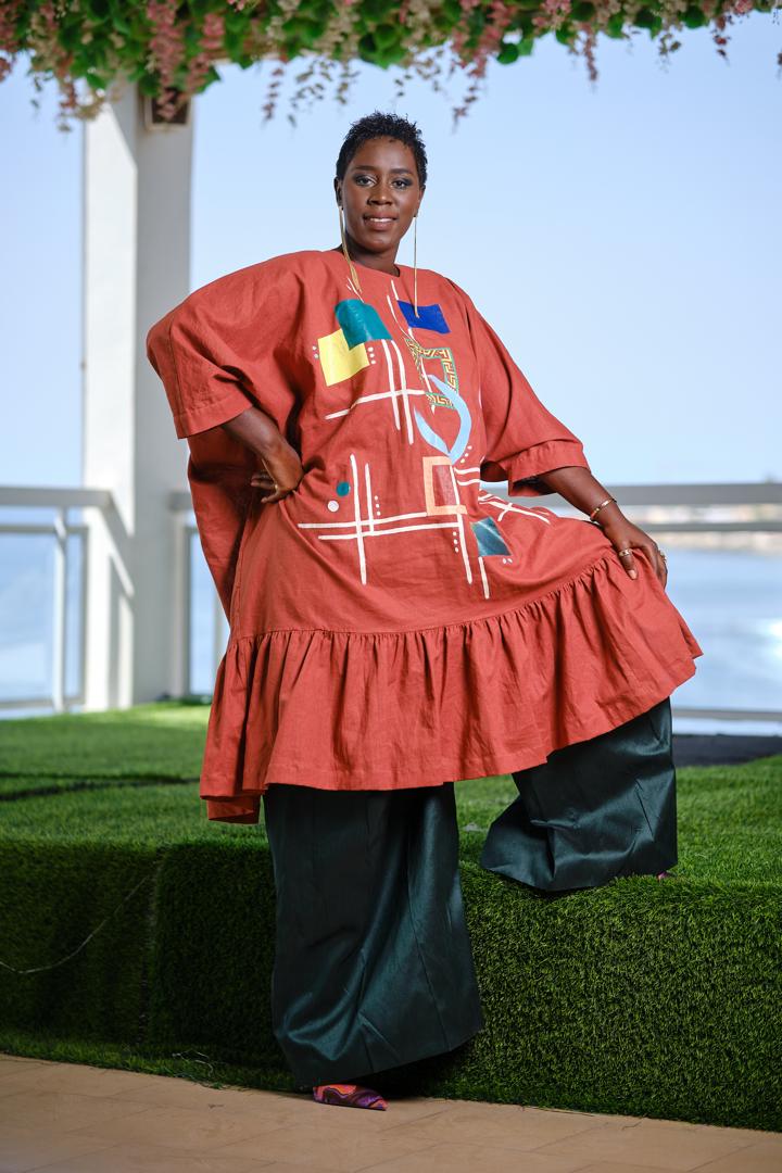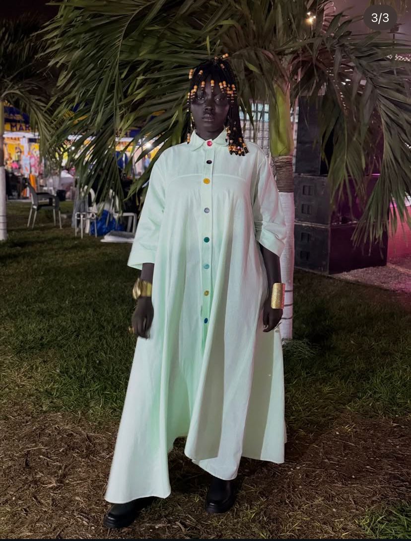 Cette tenue incarne une fusion harmonieuse entre art, féminité, et modernité.